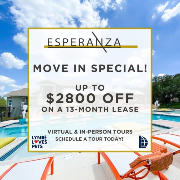Learn more about the area and our spacious floor plans when you tour Esperanza today.